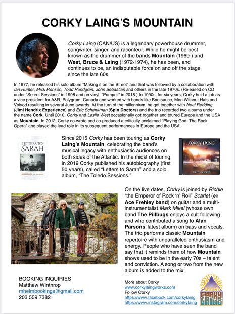 Corky Laing’s Mountain performs the classic Mountain repertoire (Mississippi Queen, Nantucket